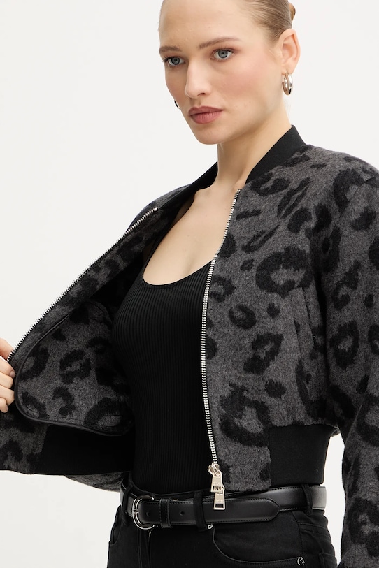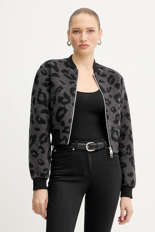 Куртка-бомбер из коллекции Silvian Heach. Эта модель без подкладки выполнена из ткани с узором. Высокое содержание шерсти обеспечивает защиту от холода, а добавление полиэстера повышает устойчивость к сминанию. - Простой дизайн, не стесняющий движений. - Рукава и низ изделия отделаны удобными эластичными манжетами. - Застежка-молния. - Два боковых накладных кармана. - Длина рукава: 60 см. - Длина: 48 см. - Ширина под мышками: 47 см. - Размеры указаны для размера: 36.