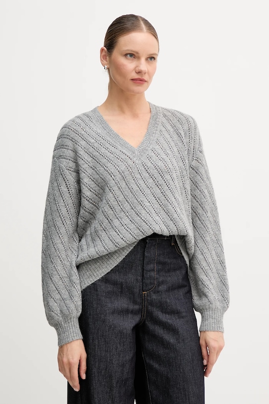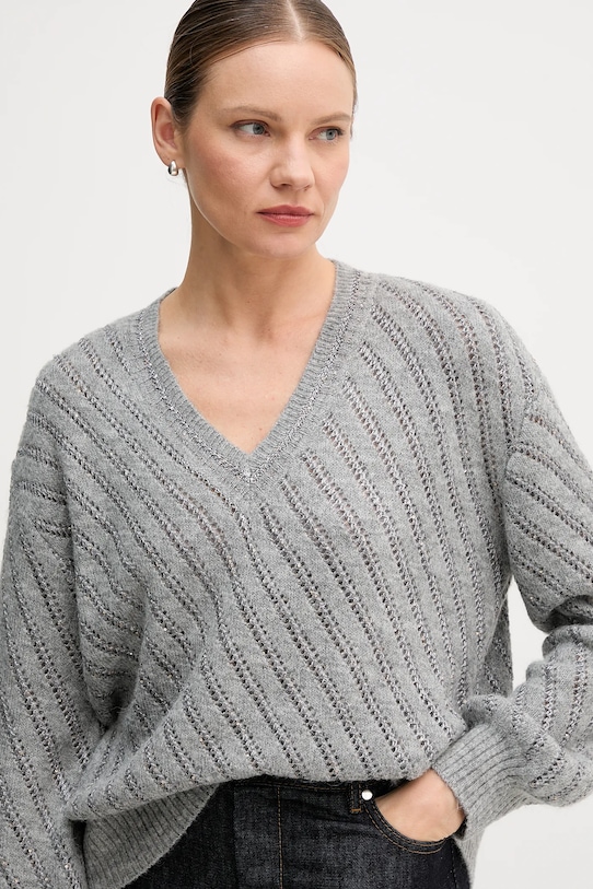 Этот свитер из коллекции Marc Aurel выполнен из трикотажа средней плотности. Рукава и подол отделаны удобными эластичными манжетами. - Свободный крой, обеспечивающий полную свободу движений. - Острый вырез. - Крой рукава со спущенной линией плеча не ограничивает подвижность. - Модель выполнена из ткани с пайетками. - Привлекающее внимание плетение. - Длина рукава (от горловины): 77 см. - Длина: 56 см. - Ширина под мышками: 61 см. - Размеры указаны для размера: 36.