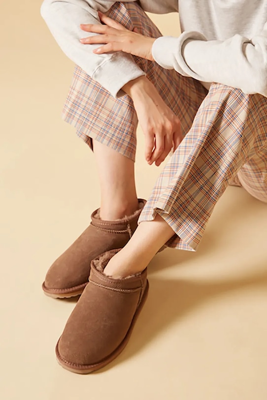 Эти зимние ботинки из коллекции Emu Australia изготовлены из замши. Подкладка из шерсти обеспечивает дополнительный комфорт и тепло. - Водонепроницаемая модель. Водостойкость означает повышенную устойчивость к воздействию воды. Изделие сохраняет свои свойства при контакте с водой, что обеспечивает больший комфорт благодаря более низкому порогу водопроницаемости, но не гарантирует полной водонепроницаемости. - Модель утеплена натуральной овчиной. - Круглый нос.
