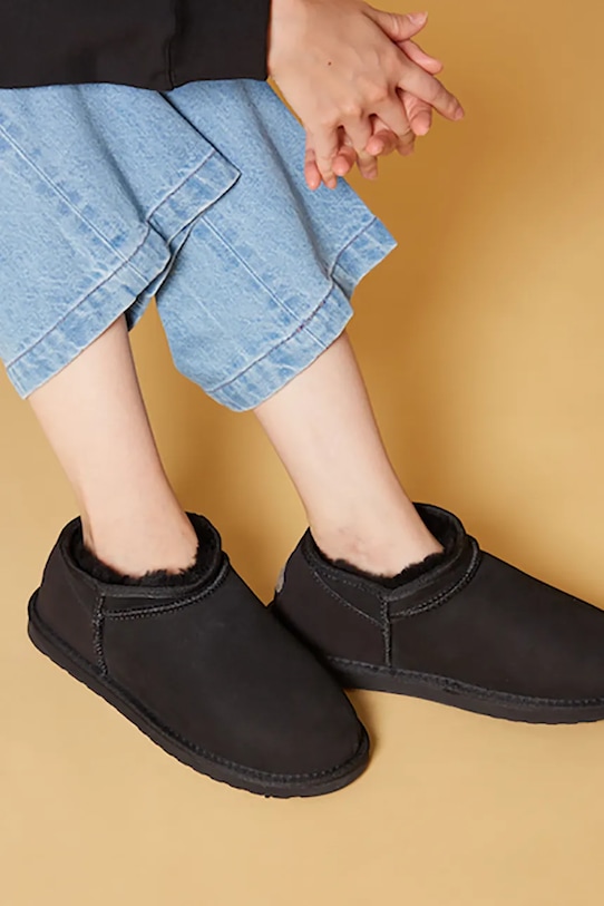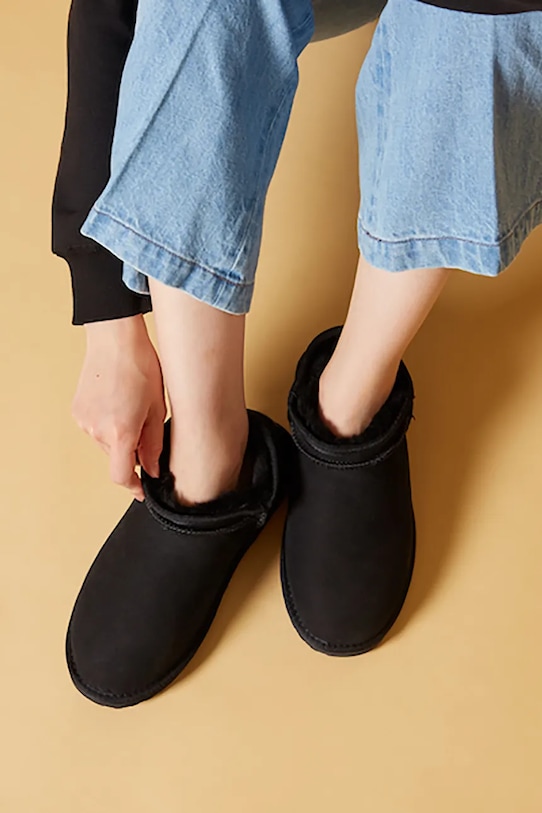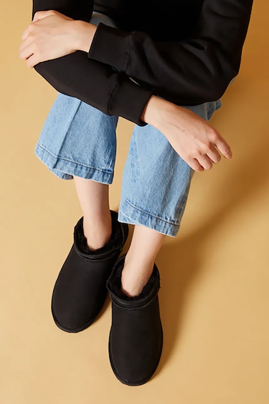 Эти зимние ботинки из коллекции Emu Australia изготовлены из замши. Подкладка из шерсти обеспечивает дополнительный комфорт и тепло. - Водонепроницаемая модель. Водостойкость означает повышенную устойчивость к воздействию воды. Изделие сохраняет свои свойства при контакте с водой, что обеспечивает больший комфорт благодаря более низкому порогу водопроницаемости, но не гарантирует полной водонепроницаемости. - Модель утеплена натуральной овчиной. - Круглый нос. - Резиновая подошва прочная и устойчивая к повреждениям.