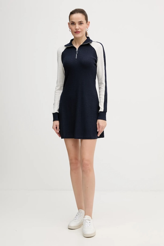 Это платье из коллекции Calvin Klein Jeans выполнено из эластичного трикотажа. Модель выполнена из исключительно комфортного материала с высоким содержанием вискозы. - Модель мини-длины. - Простой дизайн. - Застегивается на короткую молнию и имеет поднятый воротник. - Длинные рукава. - Рукава отделаны ребристыми манжетами. - Длина: 86 см. - Длина рукава: 61 см. - Ширина под мышками: 41 см. - Размеры указаны для размера: S.
