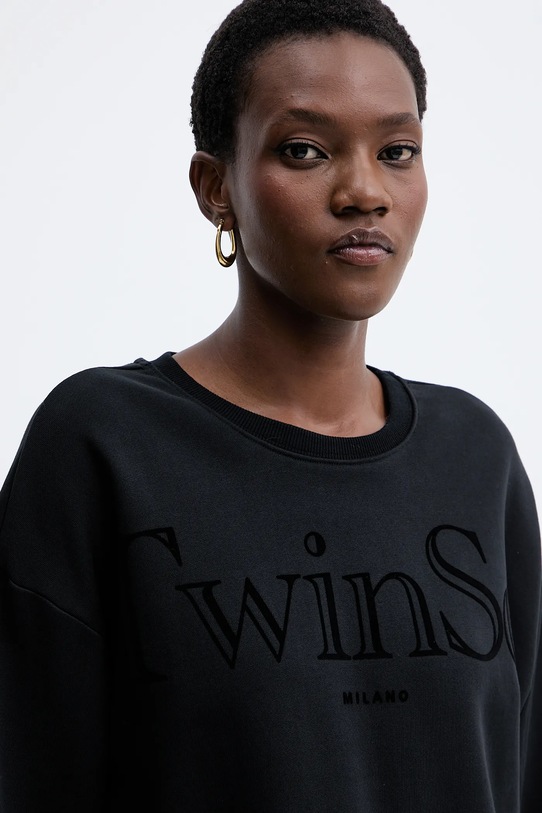 Свитшот из коллекции Twinset из эластичного трикотажного полотна. - Свободный крой, обеспечивающий полную свободу движений. - Длинный рукав. - Крой рукава со спущенной линией плеча не ограничивает подвижность. - Классический круглый вырез. - Рукава и низ изделия отделаны удобными эластичными манжетами. - Длина рукава (от горловины): 78 см. - Длина: 59 см. - Ширина под мышками: 56 см. - Размеры указаны для размера: S.