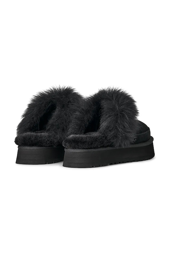 Эти тапочки из коллекции UGG изготовлены из замши. Они лёгкие и удобные, идеально подходят для повседневной носки. - UGGplush - вкладыш для обуви, изготовленный из комбинации высококачественной шерсти и нежного волокна лиоцелла. - Подошва изготовлена из легкой и гибкой пены ЭВА, полученной из сахарного тростника. - Круглый, слегка утолщенный носок. - Изолированная модель. - Платформенная модель. - Высота платформы: 2,5 см.