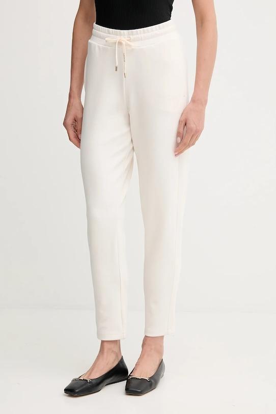 Эти спортивные брюки из коллекции Joop! выполнены из тонкого эластичного трикотажа. Благодаря содержанию модала ткань мягкая на ощупь и имеет приятную для кожи текстуру. - В процессе производства используются экологически чистые методы, экономящие воду и энергию. - Брюки свободные в области бедер и ягодиц. - Высокая талия обеспечивает комфорт во время занятий спортом и позволяет визуально стройнить фигуру. - Эластичный пояс и дополнительная регулировка ширины с помощью шнурков для предотвращения сползания во время движения. - Плотно прилегающие, зауженные к низу штанины. - Два боковых накладных кармана. - Логотип бренда вышит спереди. - Ширина талии: 36 см. - Ширина бедер: 50 см. - Высота талии: 29 см. - Ширина штанины внизу: 15,5 см. - Ширина штанины: 29 см. - Длина внешней части штанины: 98 см. - Размеры указаны для размера: 34.