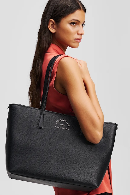 Большая сумка из коллекции Karl Lagerfeld. Модель на молнии, выполнена из экокожи.