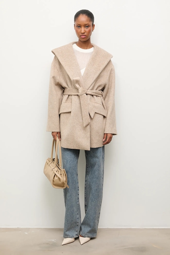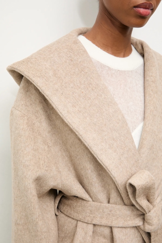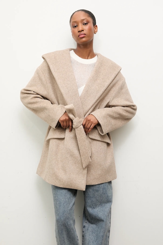 Пальто из коллекции Answear.Lab. Модель без подкладки выполнена из гладкой ткани. Содержание полиэстера делает материал менее мнущимся. - Свободный крой, обеспечивающий полную свободу движений. - Модель с регулируемой шнуровкой. - Текстильный ремешок в комплекте. - Встроенный капюшон обеспечивает дополнительное тепло и защиту при необходимости. - Крой рукава со спущенной линией плеча не ограничивает подвижность. - Модель с карманами, декорированными клапанами. - Неутепленная модель с подкладкой. - Длина рукава (от капюшона): 73,5 см. - Длина: 84 см. - Ширина под мышками: 64 см. - Размеры указаны для размера: S.