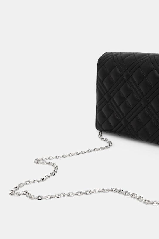 Небольшая сумочка из коллекции Love Moschino. Застёгивается на молнию, выполнена из экокожи. - Клапан застегивается на кнопку. - Два внутренних накладных кармана. - Отделения для карт. - Количество слотов для карт: 6. - Несъемный, нерегулируемый ремешок. - Входящий в комплект тканевый чехол защищает изделие от пыли. - Длина ремешка: 117 см. - Глубина: 6 см. - Высота: 12 см. - Ширина у основания: 22,5 см.