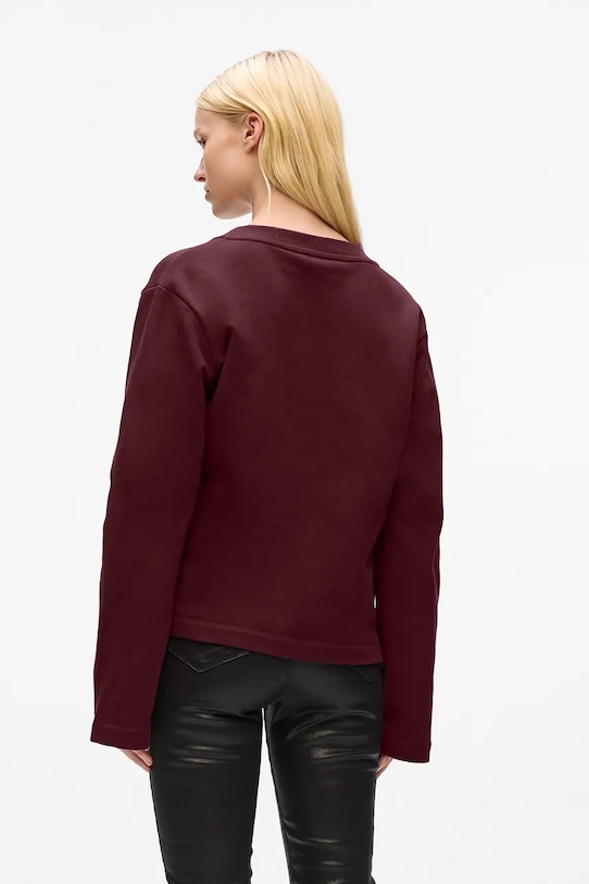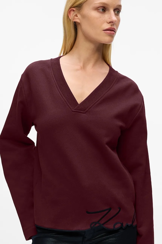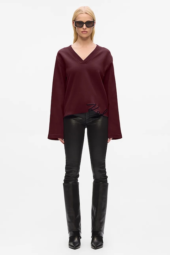 Свитшот из коллекции Karl Lagerfeld из слегка эластичного трикотажа. Этот продукт частично изготовлен из сертифицированного органического хлопка, выращенного и собранного с растений, не содержащих ГМО, без использования удобрений и пестицидов. Процесс производства органического хлопка более экологичен, а изделия из него полезнее для здоровья. - Данное изделие частично изготовлено из переработанного полиэстера. - Свободный крой, обеспечивающий полную свободу движений. - Заниженная линия плеча. - Декоративный, заостренный вырез.