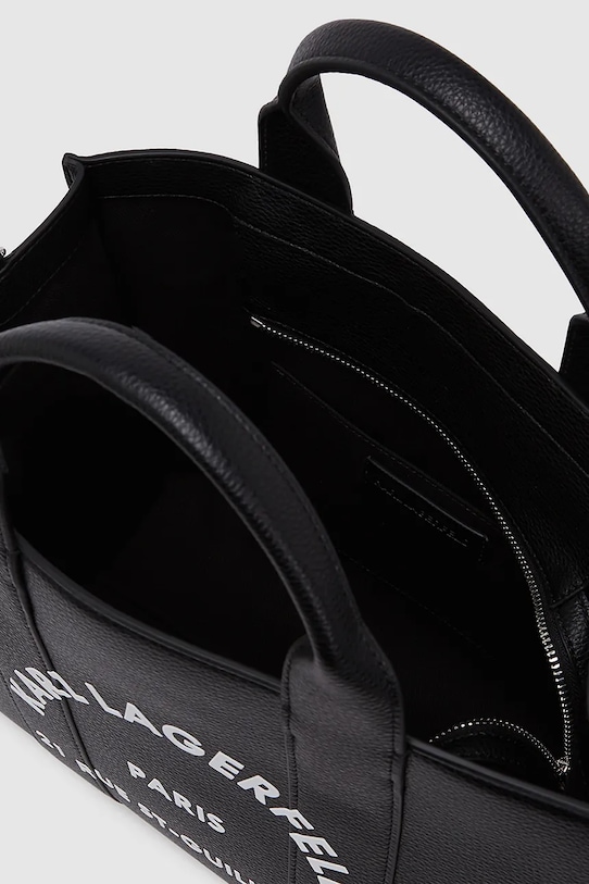 Сумка среднего размера из коллекции Karl Lagerfeld. Модель с застёжкой-крючком, выполнена из экокожи. - Отделение на молнии. - Внутренний накладной карман для удобного и безопасного хранения телефона и других мелких предметов. - Модель на подкладке. - Не подходит для формата А4. - Короткие ручки для удобной переноски в руке или на плече. - Съемный регулируемый ремешок. - Глубина: 13 см. - Высота: 26,5 см. - Ширина у основания: 34 см.
