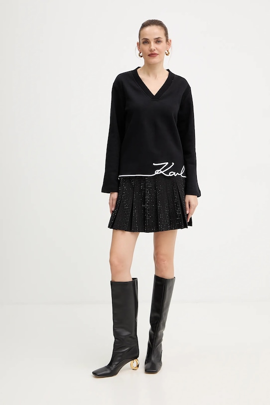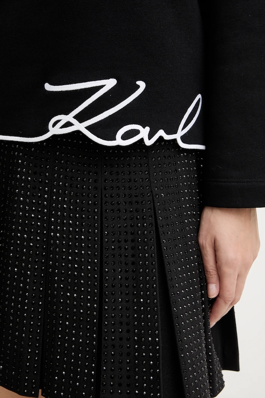 Свитшот из коллекции Karl Lagerfeld из слегка эластичного трикотажа. Этот продукт частично изготовлен из сертифицированного органического хлопка, выращенного и собранного с растений, не содержащих ГМО, без использования удобрений и пестицидов. Процесс производства органического хлопка более экологичен, а изделия из него полезнее для здоровья. - Данное изделие частично изготовлено из переработанного полиэстера. - Свободный крой, обеспечивающий полную свободу движений. - Заниженная линия плеча. - Декоративный, заостренный вырез.