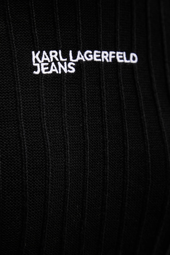 Это платье из коллекции Karl Lagerfeld Jeans выполнено из эластичного трикотажа. Материал мягкий и приятный на ощупь. - Простой дизайн, не стесняющий движений. - Модель с водолазкой. - Модель с аппликацией. - Рукава и низ изделия отделаны удобными эластичными манжетами. - Модель без подкладки. - Длина рукава: 70 см. - Длина: 93 см. - Ширина под мышками: 46 см. - Размеры указаны для размера: S.