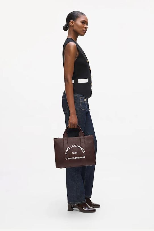 Сумка среднего размера из коллекции Karl Lagerfeld. Модель с застёжкой-крючком, выполнена из экокожи. - Отделение на молнии. - Внутренний накладной карман для удобного и безопасного хранения телефона и других мелких предметов. - Модель на подкладке. - Не подходит для формата А4. - Короткие ручки для удобной переноски в руке или на плече. - Съемный регулируемый ремешок. - Глубина: 13 см. - Высота: 26,5 см. - Ширина у основания: 34 см.