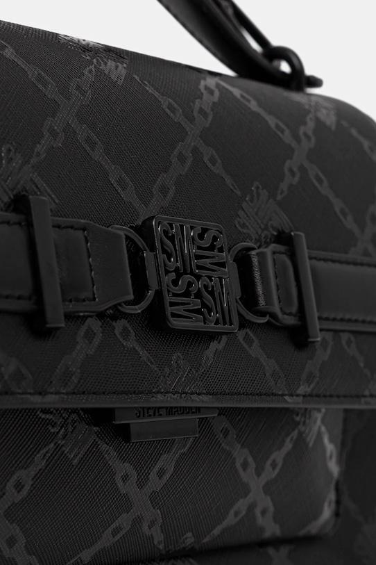 Небольшая сумочка из коллекции Стива Мэддена. Застёгивается на молнию, выполнена из экокожи. - Отделение застегивается на кнопку. - Имеет три отделения, одно из которых застегивается на молнию. - Три внутренних кармана: один на молнии, два накладных. - Накладной карман на спинке позволяет безопасно хранить мелкие предметы. - Модель на подкладке. - Не подходит для формата А4. - Имеет ручку и съемный регулируемый ремень. - Входящий в комплект тканевый чехол защищает изделие от пыли. - Глубина: 8,5 см. - Высота: 15,5 см. - Ширина у основания: 25,5 см. - Минимальная длина ремня: 110 см. - Максимальная длина ремня: 127 см. - Длина ручки: 21,5 см.