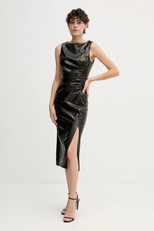 Это платье из коллекции Sisley выполнено из искусственной кожи. Оптимальная эластичность материала обеспечивает полную свободу движений. - Приталенный крой, подчеркивающий силуэт. - Классический круглый вырез. - Декоративные оборки. - У него есть щель. - Застежка-молния сзади. - Длина: 119 см. - Ширина под мышками: 35 см. - Ширина талии: 35 см. - Ширина бедер: 42 см. - Размеры указаны для размера: 36.