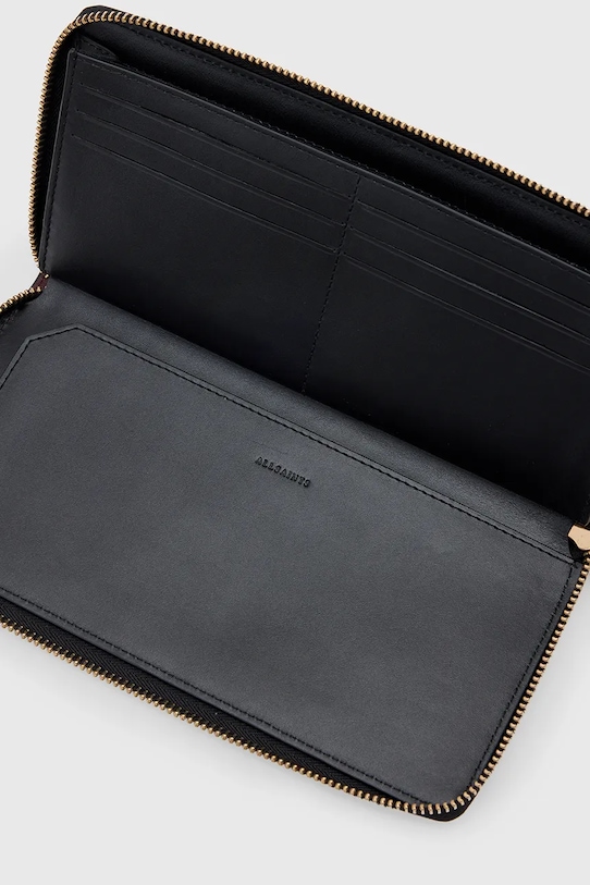 Большой кошелек из коллекции AllSaints. Изготовлен из натуральной кожи. - Эта модель изготовлена в соответствии с рекомендациями Leather Working Group, которая сертифицирует кожевенные заводы посредством строгих аудитов. Эти усилия направлены на снижение потребления энергии и воды при дублении кожи, а также на устранение загрязнения сточных вод. - Застежка-молния. - Внутренние отделения для карт. - Отделение для купюр. - Размеры: 11,5 х 22,5 х 1 см.