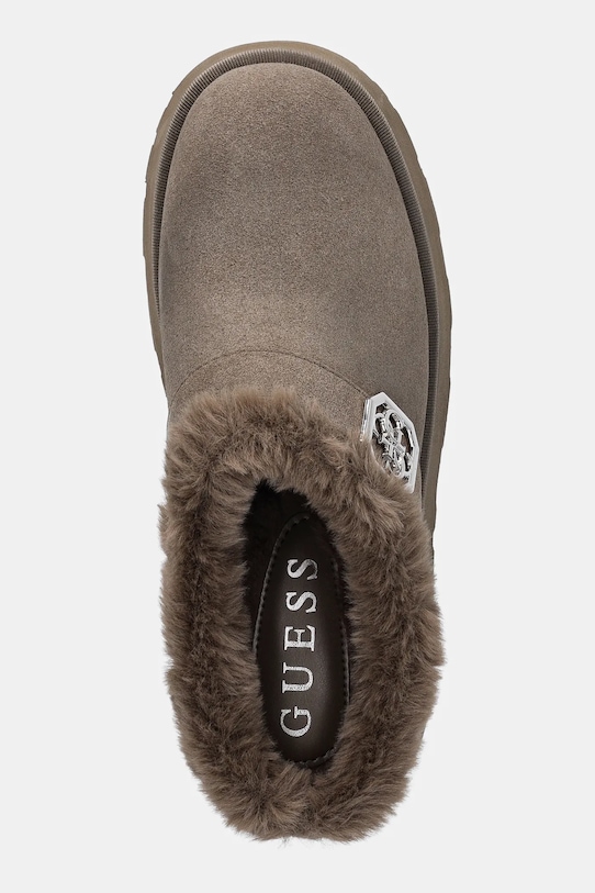 Тапочки из коллекции Guess, выполненные из замши. Мягкая стелька обеспечивает комфорт. - Подошва из пеноматериала обеспечивает более мягкое ощущение и дополнительную амортизацию. - Платформенная модель. - Круглый, жёсткий носок. - Усиленный задник обеспечивает отличную поддержку лодыжки и пятки. - Высота платформы: 4 см. - Длина вставки: 23 см. - Размеры указаны для размера: 37.