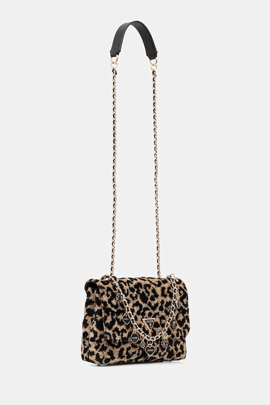 Небольшая сумочка из коллекции Guess. Модель на молнии, выполнена из текстильного материала. - Клапан застегивается на магнит. - Двухкамерная модель. - Модель на подкладке. - Не подходит для формата А4. - Модель оснащена металлическими ножками, которые защищают дно сумки. - Имеет внутренний карман на молнии и отделения для карт. - Сумка для ношения в руке или на плече. - Входящий в комплект тканевый чехол защищает изделие от пыли. - Количество слотов для карт: 6. - Минимальная длина ремешка: 76 см. - Максимальная длина ремня: 114 см. - Глубина: 7 см. - Высота: 16 см. - Ширина у основания: 23,5 см.