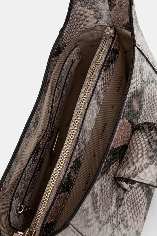 Небольшая сумочка из коллекции Guess. Изготовлена из экокожи, с застёжкой. - Входящий в комплект тканевый чехол защищает изделие от пыли. - Не подходит для формата А4. - Модель оснащена металлическими ножками, которые защищают дно сумки. - Магнитная застежка. - Имеет три отделения, одно из которых застегивается на молнию. - Имеет внутренние карманы, в том числе один на молнии. - Длинная ручка. - Модель на подкладке. - Глубина: 12 см. - Высота: 16,5 см. - Ширина у основания: 21 см. - Длина ручки: 62 см.