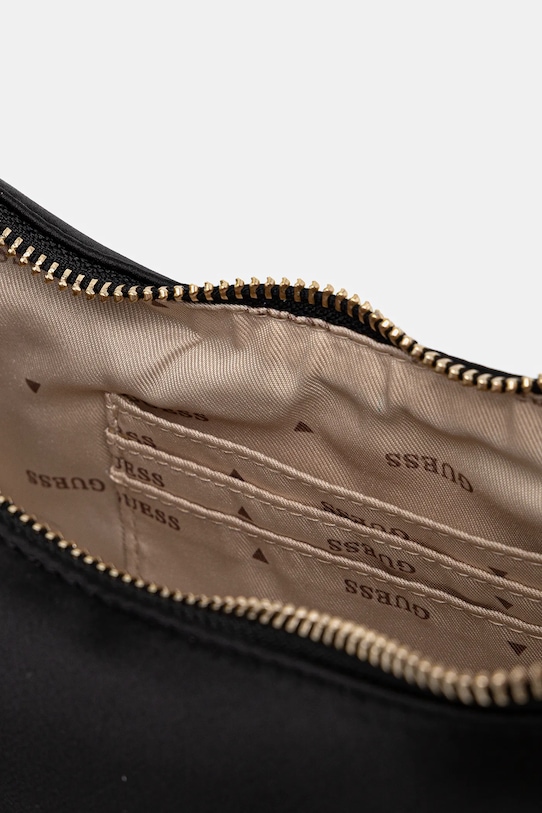 Небольшая сумочка из коллекции Guess. Изготовлена из гладкого материала. - Короткая ручка для удобной переноски в руке или на плече. - Модель оснащена металлическими ножками, которые защищают дно сумки. - Застежка-молния. - Модель на подкладке. - Отделения для карт. - Количество слотов для карт: 3. - Длина ручки: 38 см. - Глубина: 7 см. - Высота: 27 см. - Ширина в самом широком месте: 25 см.