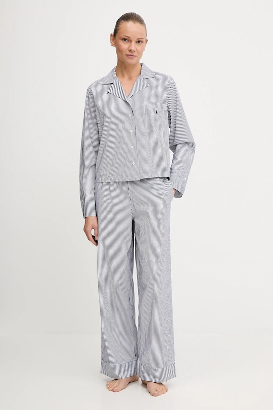 Пижама из коллекции Polo Ralph Lauren. Изготовлена из гладкой ткани. Изготовлена из дышащего хлопкового материала. - Свободный крой, обеспечивающий полную свободу движений. - Удобная застежка на кнопки позволяет легко надевать и снимать. - Модель с воротником. - Крой рукава со спущенной линией плеча не ограничивает подвижность. - Длинный рукав. - Нагрудный карман. - Эластичный пояс. - Два боковых накладных кармана. - Тонкая, неэластичная ткань. - Длина рукава (от воротника): 78 см. - Длина: 57,5 см. - Ширина под мышками: 57 см. - Ширина талии: 35 см. - Высота талии: 26 см. - Длина штанины: 102 см. - Размеры указаны для размера: S.