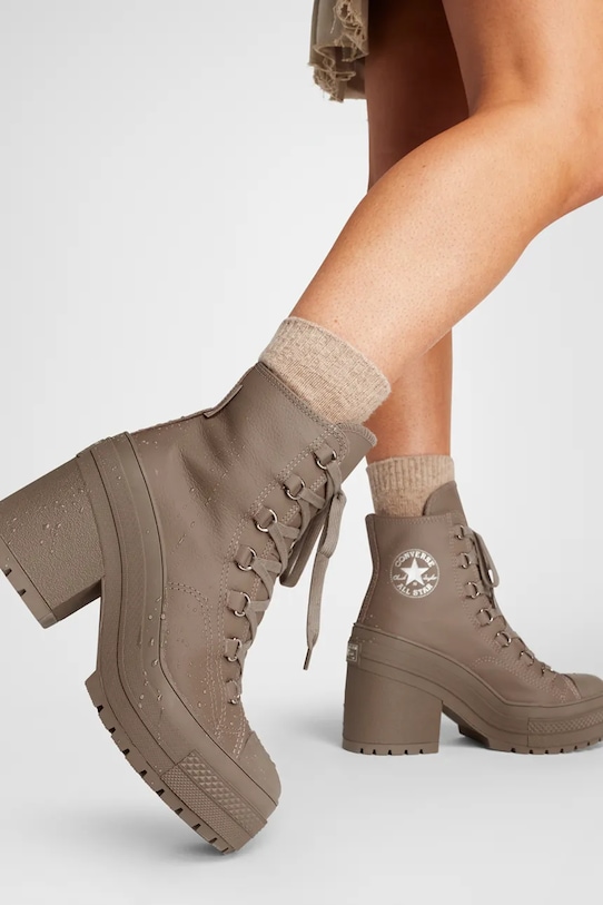 Эти ботильоны Converse изготовлены из натуральной кожи. Они оснащены прочной и износостойкой резиновой подошвой. - Водонепроницаемая модель. - Мягкая стелька из пеноматериала Ortholite отводит влагу и предотвращает потливость ног. Она обладает антибактериальными и противогрибковыми свойствами, защищает от запахов и обеспечивает отличную амортизацию. Водостойкость означает повышенную устойчивость к воздействию воды. Изделие сохраняет свои свойства при контакте с водой, что обеспечивает больший комфорт благодаря более низкому порогу водопроницаемости, но не гарантирует полной водонепроницаемости. - Круглый, прорезиненный носок. - Модель с блочным каблуком. - Классическая шнуровка позволяет индивидуально подогнать посадку. - Легкоутепленная модель.