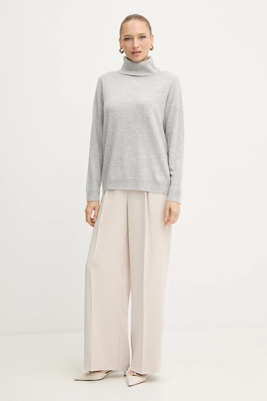 Этот свитер из коллекции Liu Jo связан из тонкого кашемира. Высокие терморегулирующие свойства шерсти позволяют согреться в холод и охладиться в жару. - Свитер оверсайз обеспечивает комфорт и свободу движений. Он дополняет самые разные стили, подчёркивая непринуждённый характер любого наряда. - Модель с высоким воротом. - Длинный рукав. - Крой рукава со спущенной линией плеча не ограничивает подвижность. - Тонкий, эластичный трикотаж. - Рукава и низ изделия отделаны манжетами для защиты от неблагоприятных погодных условий. - Длина рукава (от горловины): 74 см. - Длина: 64 см. - Ширина под мышками: 60 см. - Размеры указаны для размера: S.