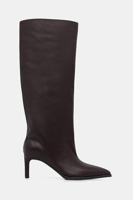 Ботинки из коллекции Answear.LAB из натуральной кожи. Модель оснащена кожаной стелькой, которая благодаря естественным порам предотвращает натирание, потертости и появление неприятного запаха. - Заостренный, жесткий нос. - Усиленный задник обеспечивает отличную поддержку лодыжки и пятки. - Модель на шпильке. - Кожаная стелька комфортна для стопы и предотвращает натирание, потертости и появление неприятного запаха. - Верхняя окружность: 40 см. - Высота голенища: 38 см. - Высота каблука: 7 см. - Длина вставки: 23 см. - Размеры указаны для размера: 37.