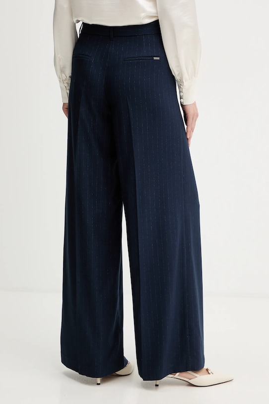 Эти брюки из коллекции Guess изготовлены из тонкой, неэластичной ткани. Содержание полиэстера делает материал менее мнущимся. - Содержит переработанный пластик. - Свободная нога. - Текстильный ремешок в комплекте. - Застежка на молнию, пуговицы и крючок. - Два боковых накладных кармана. - Имитация карманов на ягодицах. - Материал с металлической нитью. - Ширина талии: 37 см. - Ширина бедер: 52 см. - Высота талии: 27 см. - Ширина штанины внизу: 33 см. - Ширина штанины: 33 см. - Длина по внутреннему шву: 83 см. - Размеры указаны для размера: S.