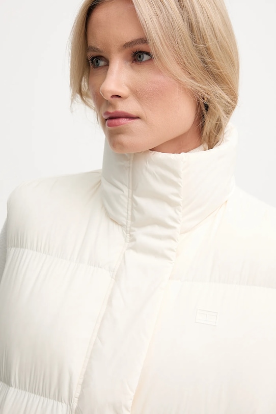 Жилет из коллекции Tommy Hilfiger. Утеплённая модель выполнена из гладкой ткани. Стёганая конструкция с наполнителем из натурального пуха гарантирует высокий уровень защиты от холода. - Водонепроницаемая модель. - Простой дизайн, не стесняющий движений. Водостойкость означает повышенную устойчивость к воздействию воды. Изделие сохраняет свои свойства при контакте с водой, что обеспечивает больший комфорт благодаря более низкому порогу водопроницаемости, но не гарантирует полной водонепроницаемости. - Поднятый воротник обеспечивает дополнительную защиту от холода. - Застежка-молния и кнопки. - Внешние карманы на молнии. - Длина: 60 см. - Ширина под мышками: 50 см. - Размеры указаны для размера: S.