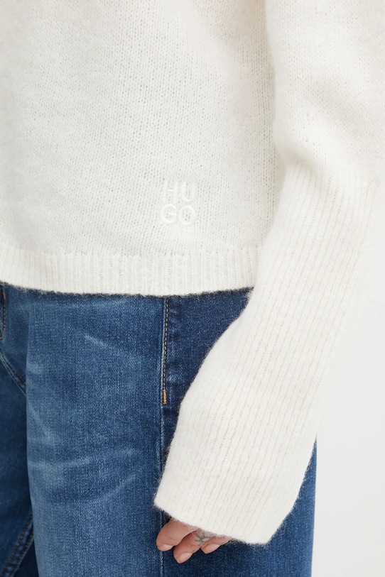 Этот свитер из коллекции HUGO выполнен из гладкой, эластичной ткани. Высокое содержание шерсти обеспечивает защиту от холода, а добавление полиамида увеличивает прочность. - Свободный крой, обеспечивающий полную свободу движений. - Водолазка, плотно прилегающая к шее, обеспечивает дополнительную защиту от холода. - Рукава реглан благодаря своей конструкции обеспечивают большую свободу движений. - Рукава и низ изделия отделаны манжетами для защиты от неблагоприятных погодных условий. - Эластичный трикотаж средней плотности. - Длина рукава (от горловины): 78 см. - Длина: 62 см. - Ширина под мышками: 56 см. - Размеры указаны для размера: S.