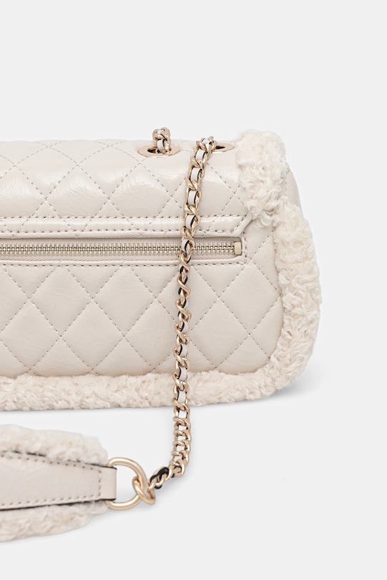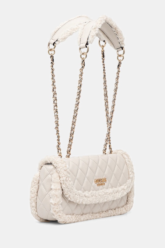 Небольшая сумочка из коллекции Guess. Модель на молнии выполнена из комбинации искусственного меха и экокожи. - Отделение застегивается на магнит. - Карман на молнии на задней стороне позволяет безопасно хранить телефон или другие мелкие предметы. - Внутренний карман на молнии. - Имеет внутренние отделения для карт. - Модель на подкладке. - Не подходит для формата А4. - Несъемный регулируемый ремешок позволяет индивидуально подогнать посадку. - Входящий в комплект тканевый чехол защищает изделие от пыли. - Модель оснащена металлическими ножками, которые защищают дно сумки. - Количество слотов для карт: 6. - Глубина: 8,5 см. - Высота: 16,5 см. - Ширина у основания: 29,5 см. - Минимальная длина ремешка: 71 см. - Максимальная длина ремня: 117 см.