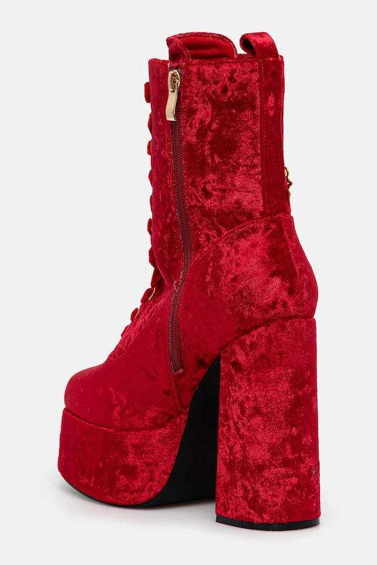 Ботильоны из коллекции Koi Footwear. Изготовлены из бархата. - Зажатый нос. - Усиленный задник обеспечивает отличную поддержку лодыжки и пятки. - Модель на шнуровке с застежкой-молнией сбоку. - Модель с блочным каблуком. - Резиновая подошва прочная и устойчивая к повреждениям. - Уютный салон. - Модель с декоративной аппликацией. - Высота каблука: 13,5 см. - Длина вставки: 25 см. - Размеры указаны для размера: 39.