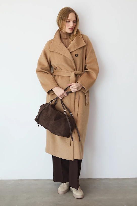 Пальто из коллекции Medicine. Модель без подкладки, выполнено из гладкой ткани. - Обычная посадка. - Длинные рукава реглан. - Поднятый воротник. - Застежка на пуговицы. - Завяжите на талии. - Два боковых накладных кармана. - Разрез сзади. - Неутепленная модель с подкладкой. - Гладкая ткань. - Длина рукава (от воротника): 73 см. - Длина: 125 см. - Ширина груди: 54 см. - Размеры указаны для размера: S.