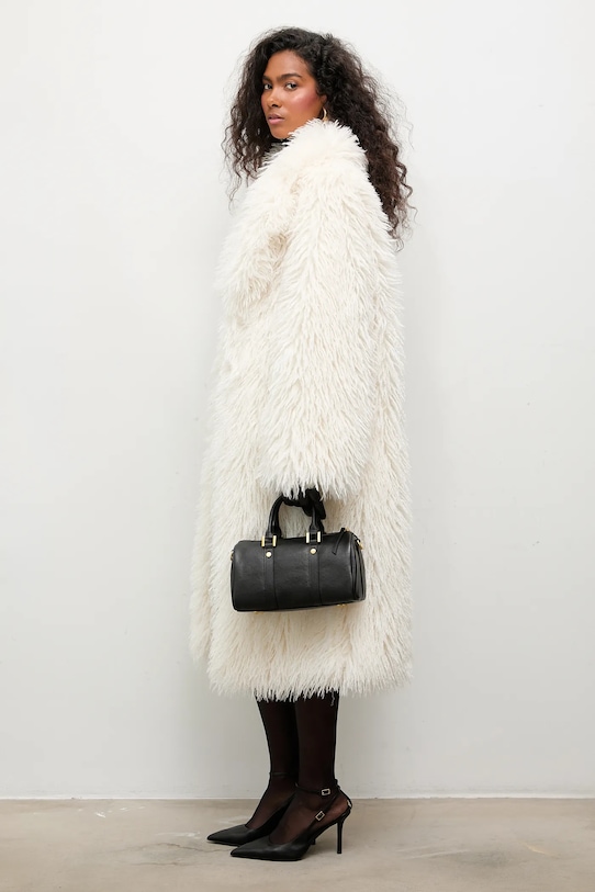 Пальто из коллекции Answear.LAB. Это пальто без подкладки выполнено из искусственного меха. - Простой дизайн, не стесняющий движений. - Застежка на один ряд крючков и петель. - Два накладных кармана спереди. - Неутепленная модель с подкладкой. - Длина рукава: 58 см. - Длина: 111 см. - Ширина под мышками: 55 см. - Размеры указаны для размера: S.