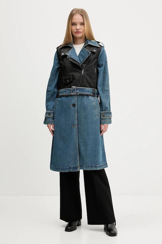 Это пальто из коллекции Desigual. Модель выполнена из денима без подкладки. В комплект входит жилет. - Простой дизайн, не стесняющий движений. - Застежка на пуговицы. - Неутепленная модель без подкладки. - Текстильный ремешок в комплекте. - Два боковых накладных кармана. - Длина рукава: 65 см. - Длина: 105 см. - Ширина под мышками: 53 см. - Размеры указаны для размера: S.