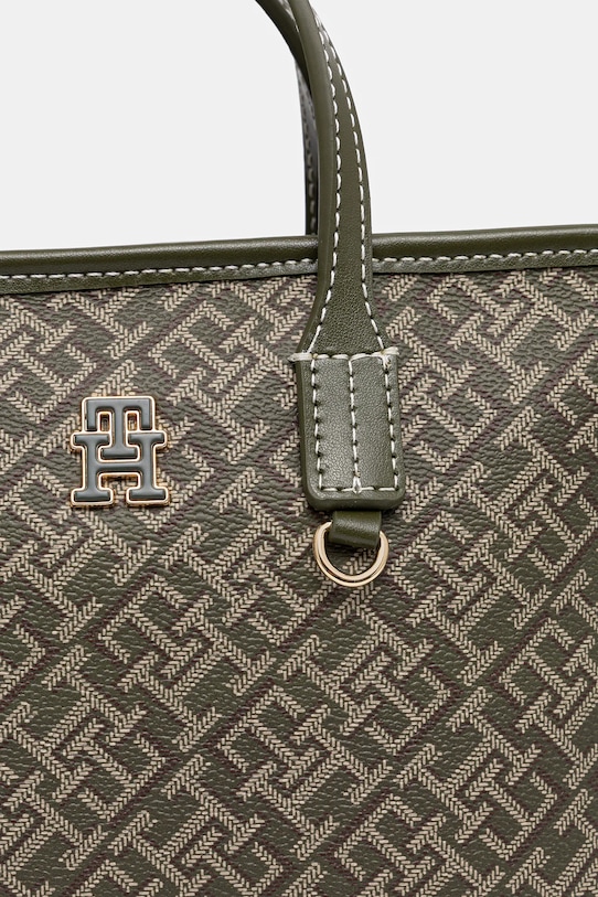 Небольшая сумочка из коллекции Tommy Hilfiger. Застёгивается на молнию, выполнена из экокожи. - Застежка-молния. - Имеет ручки и съемный регулируемый ремень. - Входящий в комплект тканевый чехол защищает изделие от пыли. - Модель без подкладки. - Внутренних карманов нет. - Минимальная длина ремешка: 102 см. - Максимальная длина ремня: 114 см. - Длина ручки: 25 см. - Глубина: 8 см. - Высота: 16 см. - Ширина у основания: 21 см.