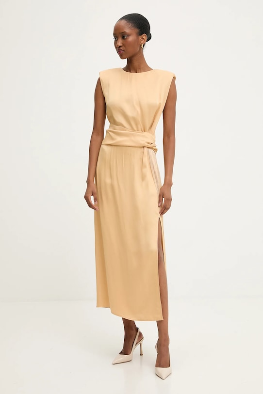 Это платье из коллекции Answear.LAB выполнено из гладкого материала. Его крой отличается тонкой, струящейся тканью. - Расклешенный крой. - Круглый вырез. - Потайная застежка-молния сзади. - Декоративный разрез спереди. - Эластичная вставка обеспечивает индивидуальную посадку. - В плечах вшиты подкладки. - Модель с декоративной бахромой. - Длина платья: 130 см. - Ширина под мышками: 44 см. - Размеры указаны для размера: S.
