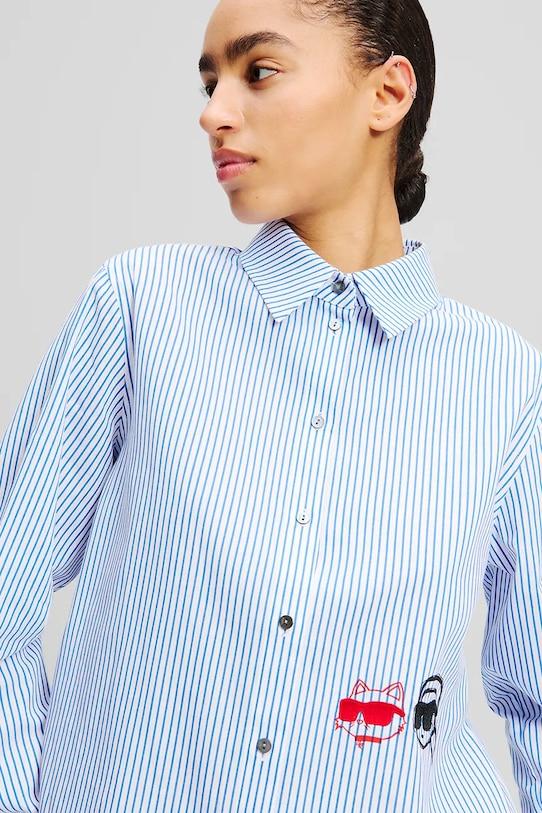 Рубашка из коллекции Karl Lagerfeld. Изготовлена из дышащей хлопковой ткани. - Рубашка свободного кроя отличается свободным кроем, обеспечивает комфорт и не стесняет движений. - Удобная застежка на кнопки позволяет легко надевать и снимать. - Длинный рукав. - Манжеты на пуговицах. - Модель с воротником. - Тонкая, слегка эластичная ткань. - Модель с принтом.