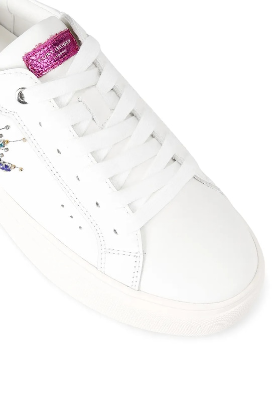 Кроссовки из коллекции Kurt Geiger London из натуральной кожи. Лёгкие и удобные, идеально подходят для повседневной носки. - Круглый нос. - Усиленный задник с мягким наполнителем защищает пятку от истирания. - Текстильная внутренняя часть комфортна для ног и облегчает содержание обуви в чистоте. - Классическая шнуровка позволяет индивидуально подогнать обувь по ноге. - Резиновая подошва прочная и устойчивая к повреждениям.