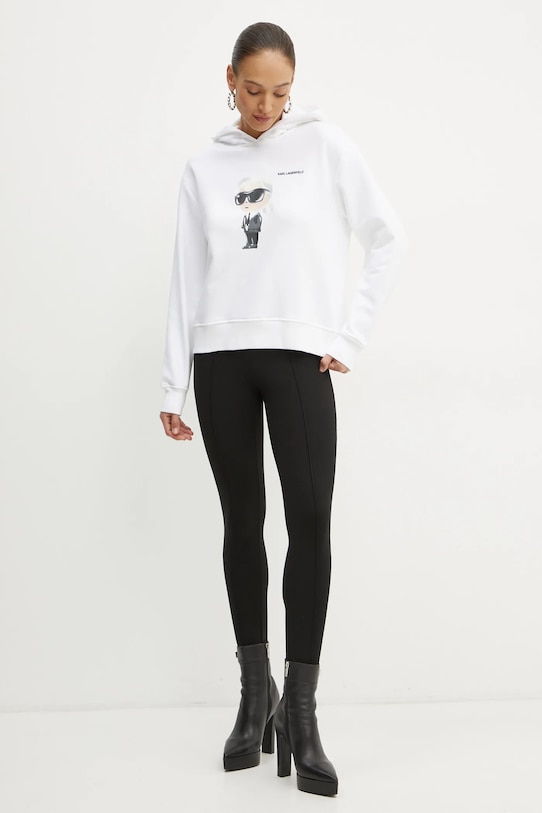 Эта толстовка с капюшоном из коллекции Karl Lagerfeld выполнена из принтованного трикотажа. Модель выполнена из исключительно комфортного материала с высоким содержанием хлопка. - Модели линейки Karl Cares изготовлены из материалов, произведенных в ходе устойчивого, экологически чистого процесса производства. - Свободный крой, обеспечивающий полную свободу движений. - Крой рукава со спущенной линией плеча не ограничивает подвижность. - Рукава и низ изделия отделаны удобными эластичными манжетами. - Длина рукава (от капюшона): 76 см. - Длина: 60 см. - Ширина под мышками: 55 см. - Размеры указаны для размера: S.