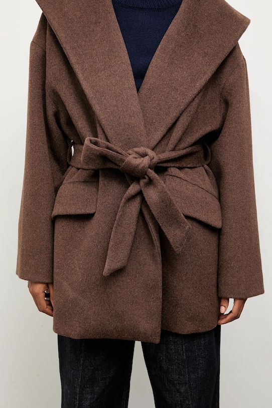 Пальто из коллекции Answear.Lab. Модель без подкладки выполнена из гладкой ткани. Содержание полиэстера делает материал менее мнущимся. - Свободный крой, обеспечивающий полную свободу движений. - Модель с регулируемой шнуровкой. - Текстильный ремешок в комплекте. - Встроенный капюшон обеспечивает дополнительное тепло и защиту при необходимости. - Крой рукава со спущенной линией плеча не ограничивает подвижность. - Модель с карманами, декорированными клапанами. - Неутепленная модель с подкладкой. - Длина рукава (от капюшона): 73,5 см. - Длина: 84 см. - Ширина под мышками: 64 см. - Размеры указаны для размера: S.