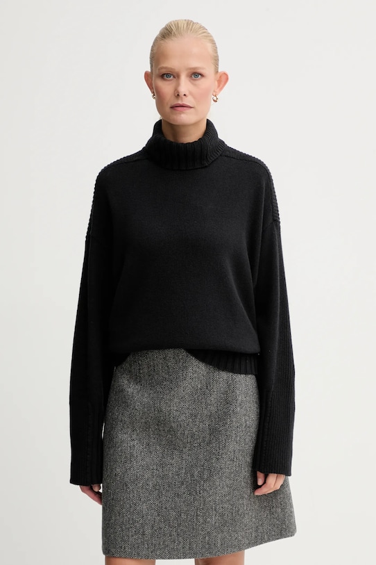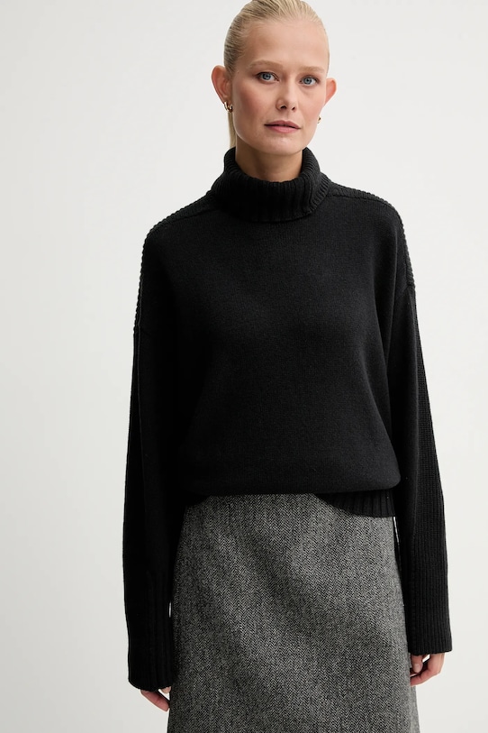 Этот свитер из коллекции Twinset выполнен из плотного, эластичного трикотажа. Шерсть обладает естественными дышащими и терморегулирующими свойствами. - Свободный крой, обеспечивающий полную свободу движений. - Крой рукава со спущенной линией плеча не ограничивает подвижность. - Модель с высоким воротом. - Длина рукава (от горловины): 75 см. - Длина: 68 см. - Ширина под мышками: 53 см. - Размеры указаны для размера: S.