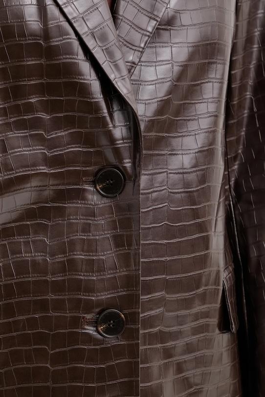 Куртка из коллекции ISABELLE BLANCHE из экокожи. - Простой дизайн, не стесняющий движений. - Удобная застежка на кнопки позволяет легко надевать и снимать. - Классические лацканы. - Дополнительный слой материала в виде подкладки. - Два накладных кармана спереди. - В плечах вшиты подкладки. - Длина рукава: 62 см. - Длина: 74 см. - Ширина под мышками: 50 см. - Ширина плеч: 37 см. - Размеры указаны для размера: S.