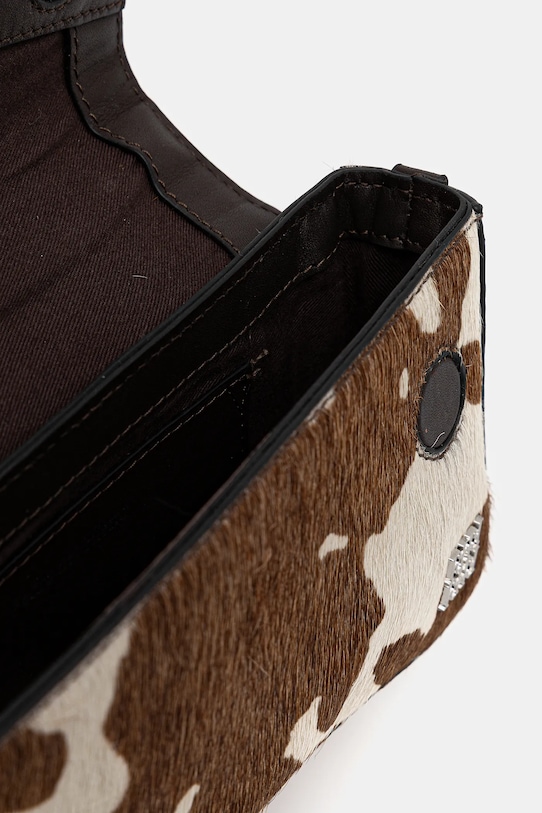 Небольшая сумочка из коллекции Pedro del Hierro. Модель на молнии из натуральной кожи с щетиной. - Клапан застегивается на магнит. - Не подходит для формата А4. - Внутренний накладной карман. - Модель на подкладке. - Имеет ручку и съемный регулируемый ремень. - Входящий в комплект тканевый чехол защищает изделие от пыли. - Минимальная длина ремешка: 97 см. - Максимальная длина ремня: 109 см. - Длина ручки: 18 см. - Глубина: 4 см. - Высота: 10 см. - Ширина у основания: 19 см.