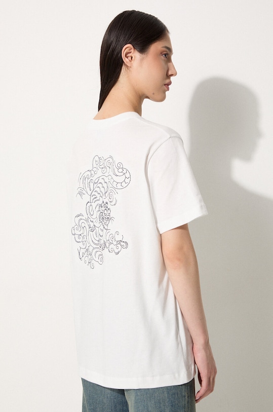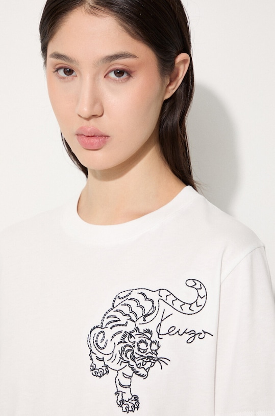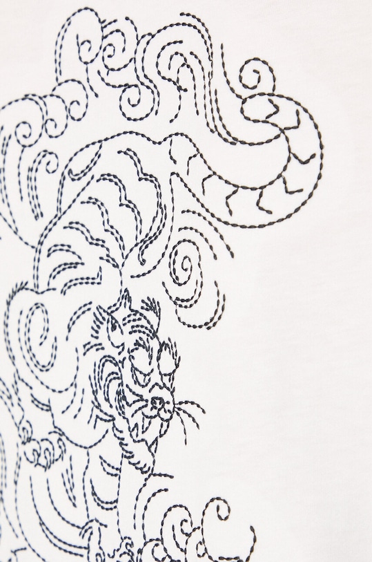 Эта футболка из коллекции Kenzo выполнена из эластичного трикотажного полотна, изготовленного из исключительно комфортного хлопкового материала. Этот продукт изготовлен из сертифицированного органического хлопка, выращенного и собранного с растений, не содержащих ГМО, без использования удобрений и пестицидов. Процесс производства органического хлопка более экологичен, и изделия из него также более экологичны. Наш хлопок сертифицирован по стандарту GOTS (Глобальный стандарт органического текстиля), что гарантирует его производство с заботой об окружающей среде и соблюдением прав работников. - Классический круглый вырез. - Тонкий, эластичный трикотаж. - Модель с декоративной вышивкой. - Обычная посадка. - Длина: 67 см. - Ширина под мышками: 52 см. - Размеры указаны для размера: S.