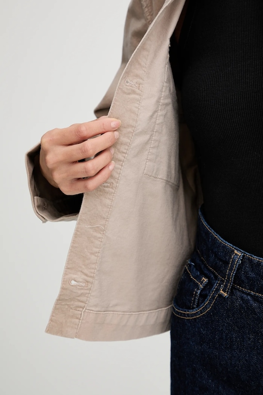 Эта куртка из коллекции Marc O'Polo. Она выполнена из мягкого, приятного на ощупь материала. - Простой дизайн. - Однобортный пиджак с застежкой на пуговицы. - Нагрудные карманы. - Модель с воротником. - Модель выполнена из велюра. Этот продукт частично изготовлен из сертифицированного органического хлопка, выращенного и собранного с растений, не содержащих ГМО, без использования удобрений и пестицидов. Процесс производства органического хлопка более экологичен, а изделия из него полезнее для здоровья. Наш хлопок сертифицирован по стандарту OCS 100 (Organic Content Standard), который подтверждает содержание органических волокон в конечном продукте, поэтому вы можете быть уверены в его органическом составе. - Длина: 58 см. - Длина рукава: 60 см. - Ширина под мышками: 51 см. - Размеры указаны для размера: 36.