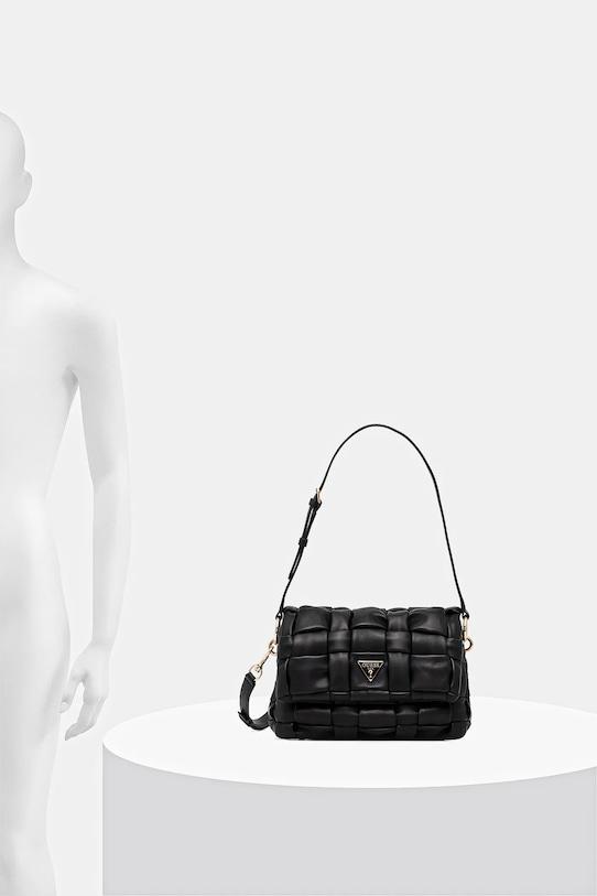 Небольшая сумочка из коллекции Guess. Модель на молнии, выполнена из экокожи. - Клапан застегивается на кнопку. - Вмещает формат А4. - Имеет внутренний карман на молнии и отделения для карт. - Количество слотов для карт: 6. - Модель на подкладке. - Имеет съемную ручку и съемный регулируемый ремень. - Модель оснащена металлическими ножками, которые защищают дно сумки. - Входящий в комплект тканевый чехол защищает изделие от пыли. - Минимальная длина ремня: 110 см. - Максимальная длина ремня: 130 см. - Максимальная длина ручки: 66 см. - Минимальная длина ручки: 57 см. - Глубина: 9 см. - Высота: 16 см. - Ширина у основания: 27 см.