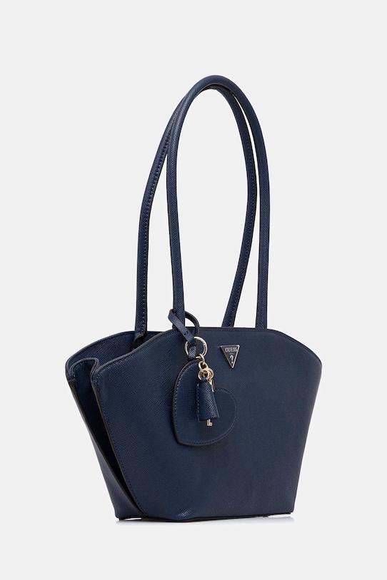 Небольшая сумочка из коллекции Guess. Модель на молнии, выполнена из экокожи. - Отделение на молнии. - Имеет три отделения, одно из которых застегивается на молнию. - Три внутренних кармана: один на молнии, два накладных. - Карман на молнии на задней стороне позволяет безопасно хранить телефон или другие мелкие предметы. - Модель на подкладке. - Не подходит для формата А4. - Длинные ручки для удобной переноски в руке или на плече. - В комплект модели входит брелок. - Модель оснащена металлическими ножками, которые защищают дно сумки. - Входящий в комплект тканевый чехол защищает изделие от пыли. - Глубина: 10,5 см. - Высота: 23 см. - Ширина у основания: 20 см. - Длина ручки: 73 см.