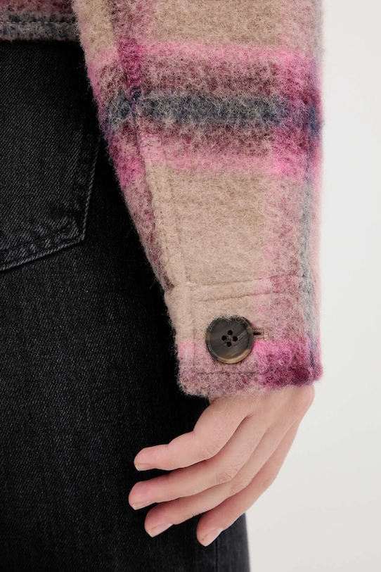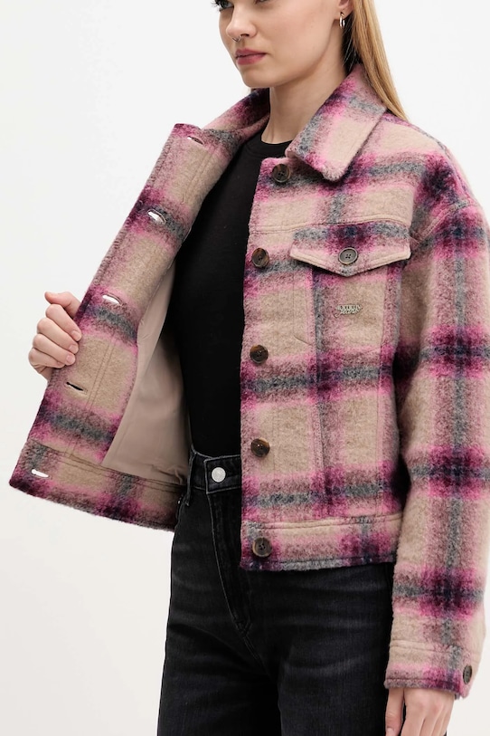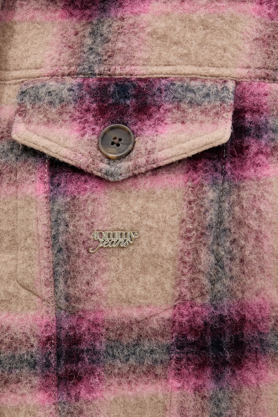 Эта куртка из коллекции Tommy Jeans без подкладки сшита из ткани с узором. Высокое содержание шерсти обеспечивает защиту от холода, а добавление полиэстера повышает устойчивость к сминанию. - Модель частично изготовлена из переработанной шерсти. - Свободный крой, обеспечивающий полную свободу движений. - Крой рукава со спущенной линией плеча не ограничивает подвижность. - Манжеты на пуговицах. - Модель с мягким воротником. - Удобная застежка на кнопки позволяет легко надевать и снимать. - Неутепленная модель с подкладкой. - Два нагрудных кармана на пуговицах. - Длина рукава (от воротника): 73 см. - Длина: 55 см. - Ширина под мышками: 52 см. - Размеры указаны для размера: S.