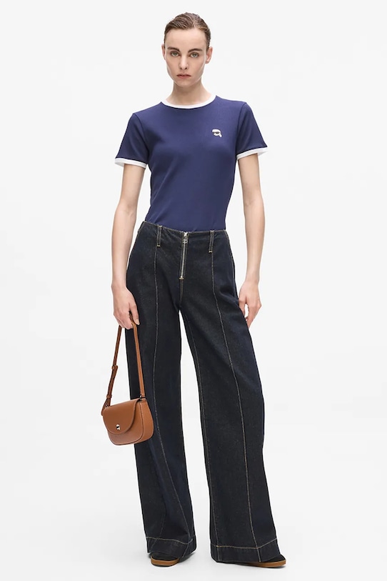 Джинсы широкого кроя из коллекции Karl Lagerfeld с обычной талией. Изготовлены из плотного денима. - Модель изготовлена из переработанного хлопка. - Широкие штанины. - Модель с обычной талией и застежкой-молнией. - Два боковых накладных кармана. - Два накладных кармана на ягодицах. - Декоративная строчка.